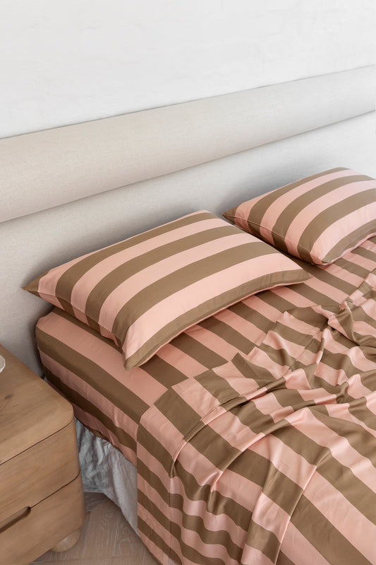 PRE-ORDER - Caramel & White Stripe Sheet Set
